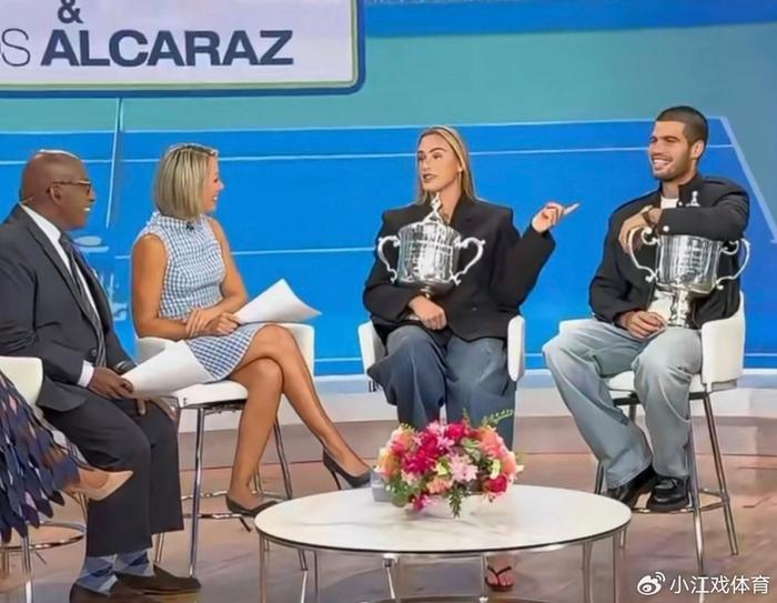 北京时间9月9日,2025年美网已经结束,阿尔卡拉斯和萨巴伦卡分别夺得男单和女单冠军,两人一起参加节目,结果发生了爆笑的一幕。